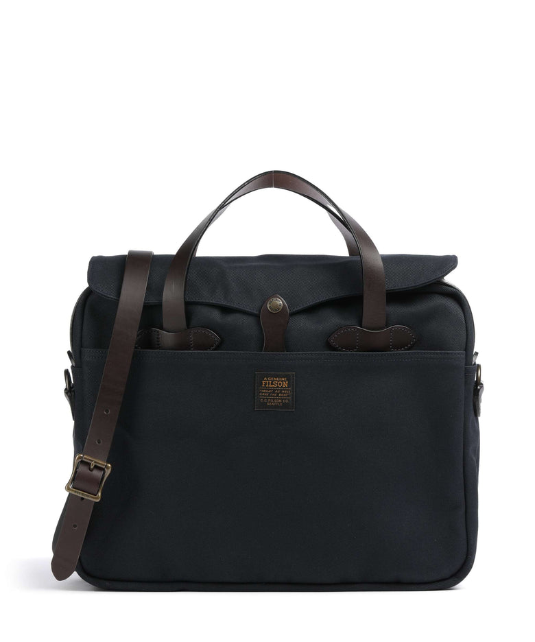 The traditional briefcase is far from outdated—in fact, it has enjoyed a comeback in recent years, especially in the retro-loving hipster scene. Briefcases are the quintessential work bags. Their defining feature is a rectangular shape that allows documents (hence the name) to be transported safely and without creasing. Typical briefcase-style business bags have one or two short handles. These bags offer generous storage, usually with two large interior compartments and a dedicated laptop section. Leather briefcases are especially popular for their solid and professional appearance. Classic business bags often come in black or brown. Brown briefcases with two symmetrical front pockets and buckle closures are also known as teacher bags. Another type is the nostalgic doctor’s bag, which is not only used in the medical field. Styled after traditional country doctor bags, these business bags appeal to anyone drawn to vintage aesthetics. Trendy versions made from canvas or felted wool create a relaxed vibe and pair well with casual business attire.