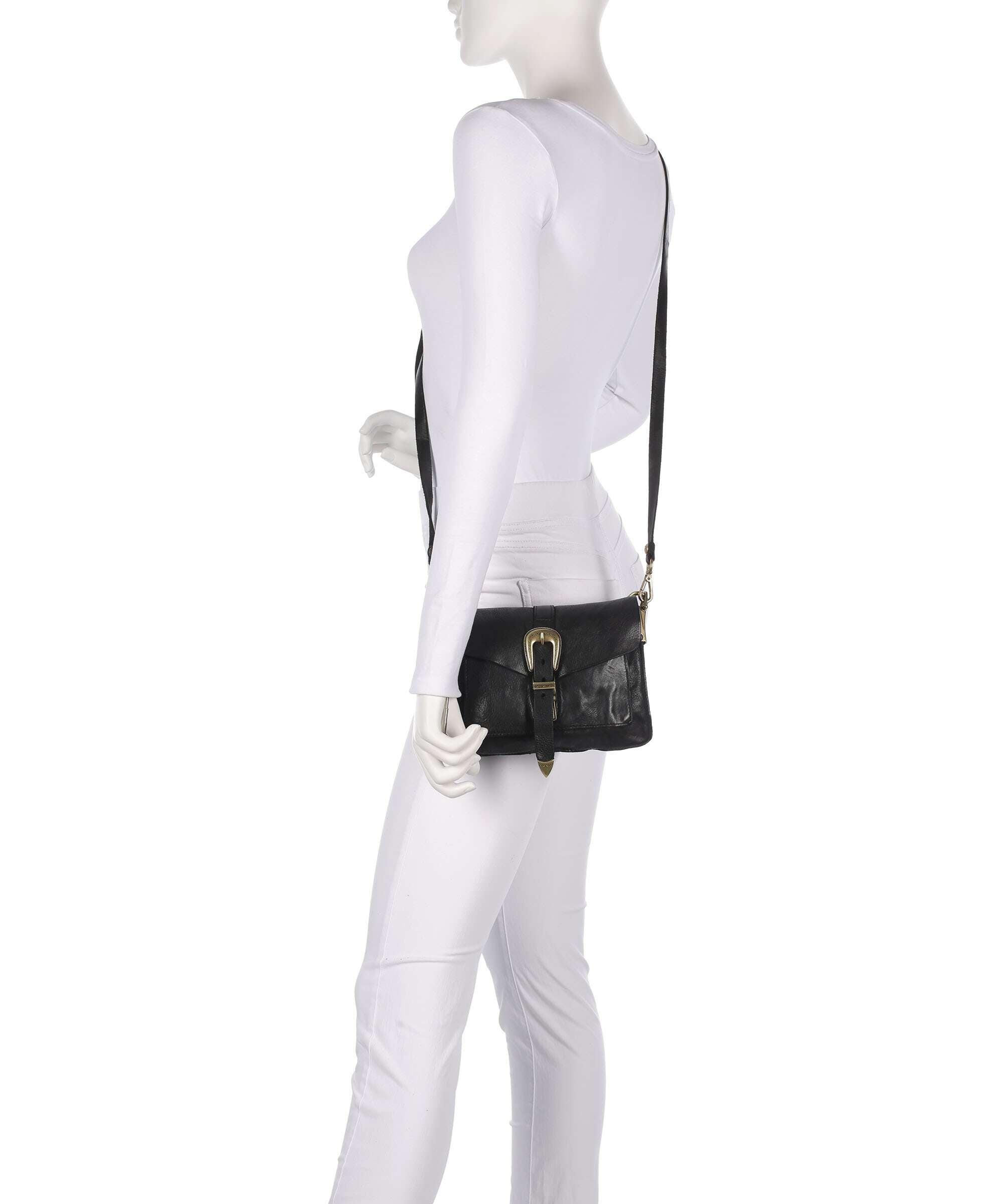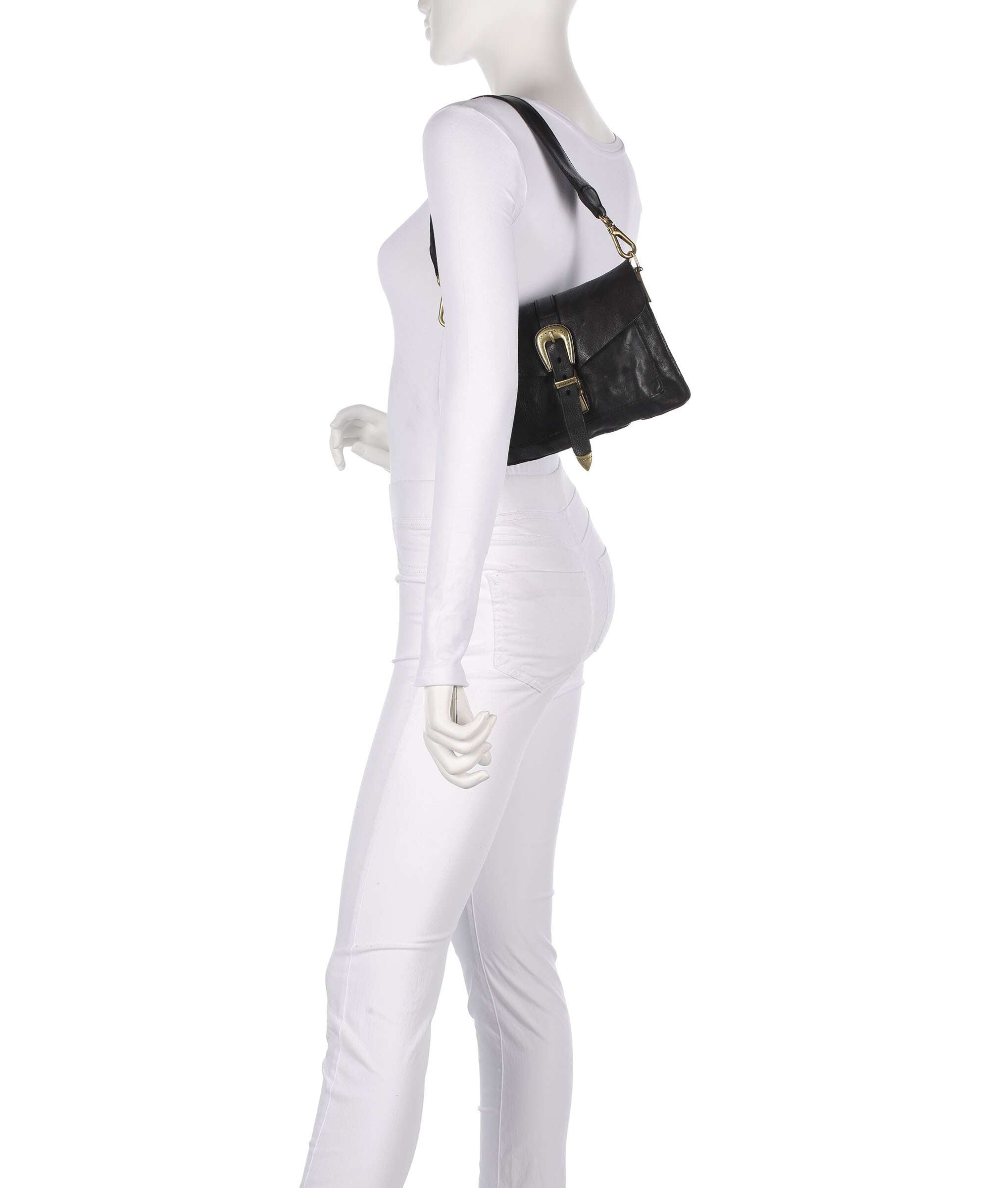 Shoulder bag fine grain cow leather nero