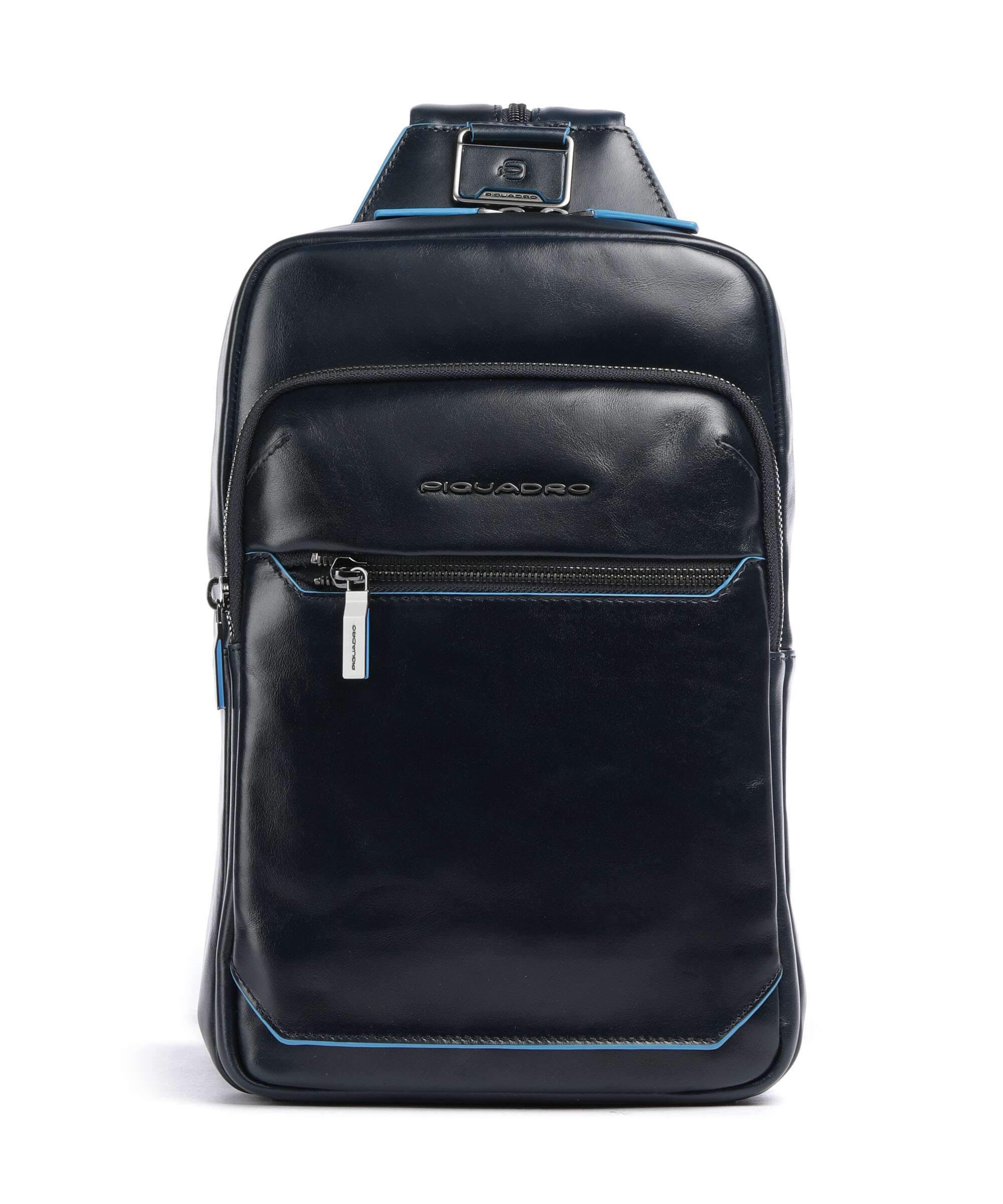 Blue Square Bolsa tipo sling couro de couro de vaca finamente granulado blu notte